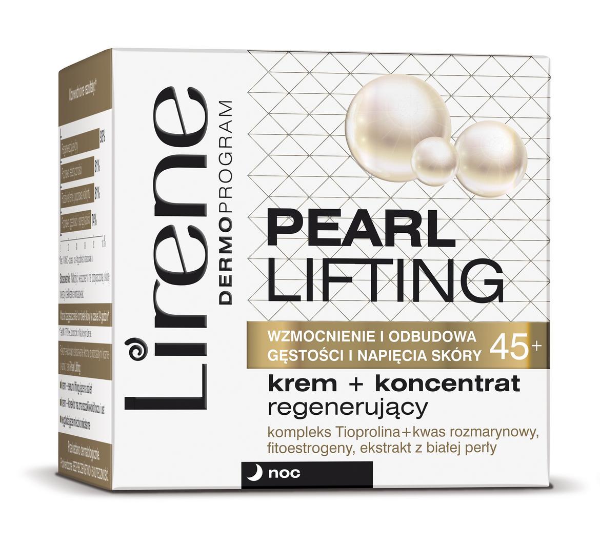 Lirene Pearl Lifting to linia kosmetyków odmładzających, dedykowanych paniom po 45. roku życia, u których na skutek zmian hormonalnych dochodzi do zmniejszenia grubości i gęstości skóry, spadku jej napięcia i utraty konturu twarzy oraz uwidocznienia zmarszczek. Formuły kosmetyków zawierają unikalne i skuteczne składniki aktywne, takie jak kompleks Tioproliny i kwasu rozmarynowego, który wzmacnia włókna zapobiegając wiotczeniu skóry, a także fitoestrogeny przeciwdziałające efektom hormonalnego starzenia się skóry oraz ekstrakt z białej perły, który redukuje zmarszczki i nierówności skóry i rozświetla, dając efekt optycznego retuszu zmarszczek. W badaniach na hodowlach komórek skóry udowodniono, że wzrost gęstości komórek następuje już 24 godziny po zastosowaniu substancji aktywnych wchodzących w skład receptur Pearl Lifting.