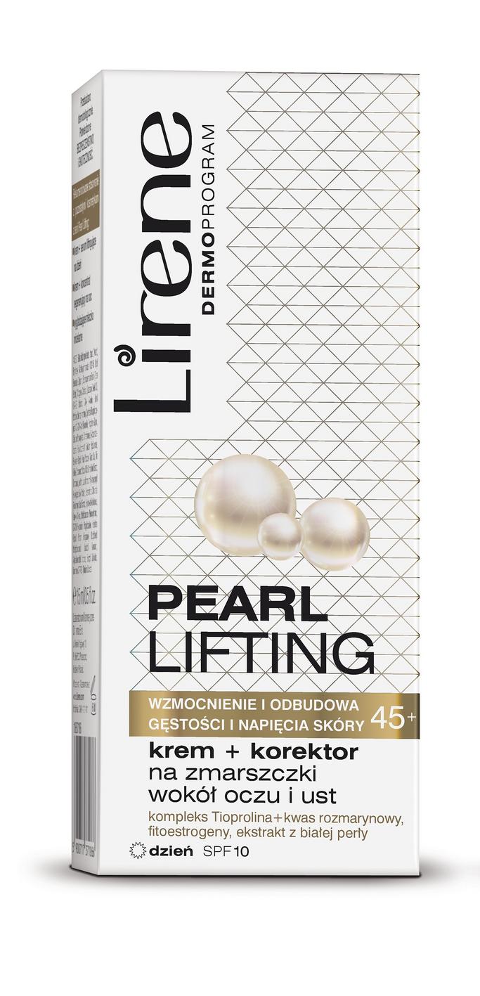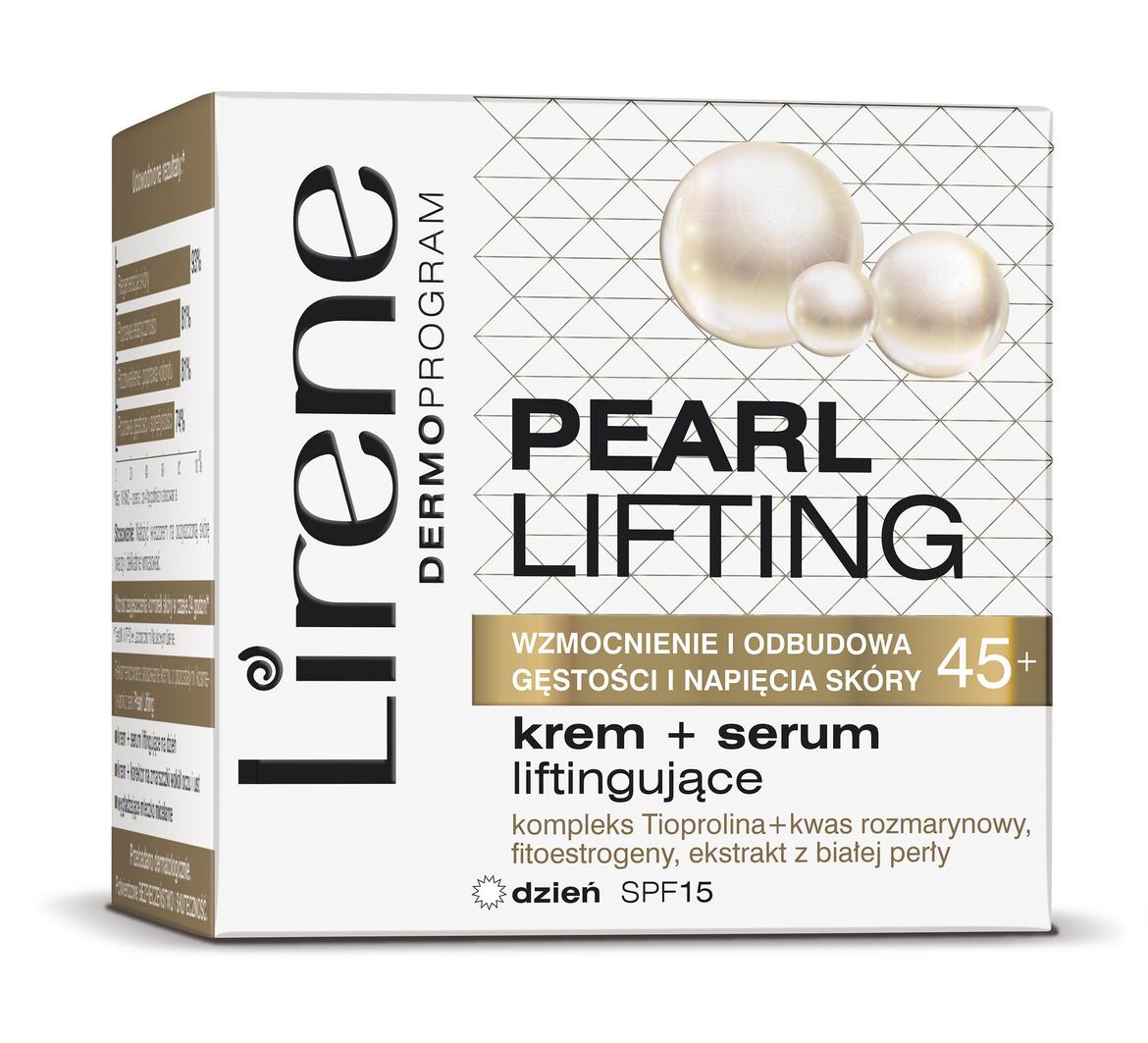 Po 45. roku życia, w wyniku zmian hormonalnych oraz procesów oksydacyjnych, skóra kobiet traci gęstość i elastyczność. Dlatego Eksperci Laboratorium Naukowego Lirene opracowali przełomową propozycję pielęgnacyjną – linię Lirene Pearl Lifting. Kosmetyki Lirene Pearl Lifting, dzięki zawartości fitoestrogenów, unikalnego kompleksu Tioprolina + kwas rozmarynowy będącego przedmiotem zgłoszenia patentowego, a także ekstraktu z białej perły, przeciwdziałają rezultatom hormonalnego starzenia się skóry. Zastosowane formuły chronią ją przed oksydacją i procesami wiotczenia, a także redukują nierówności, dając efekt optycznego retuszu zmarszczek.
