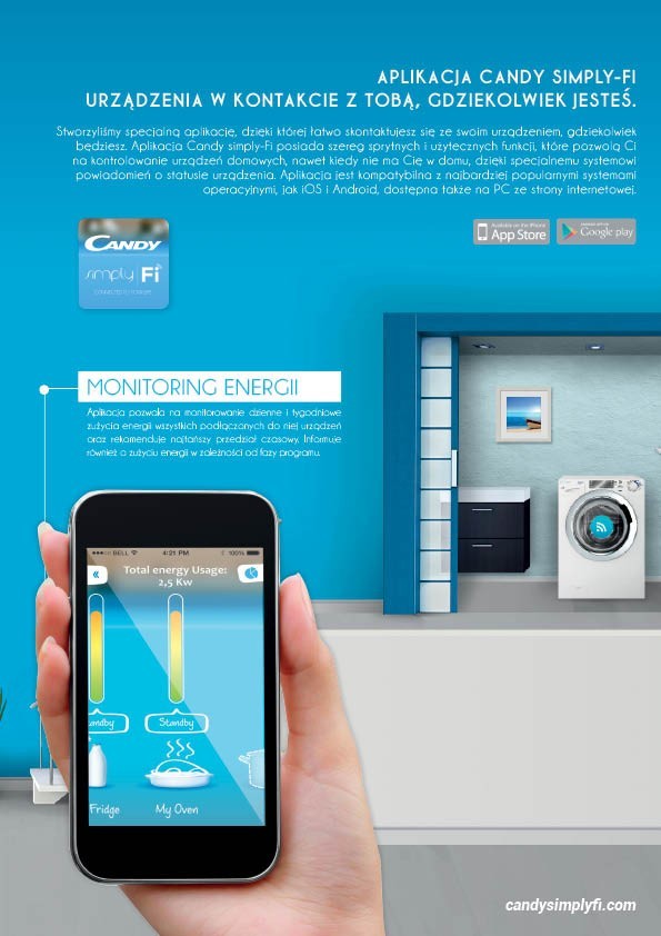 Candy Simply|Fi system oferuje też inteligentny monitoring poboru energii, sugerując najlepsze sposoby użytkowania, tak by zaoszczędzić na rachunkach za prąd.