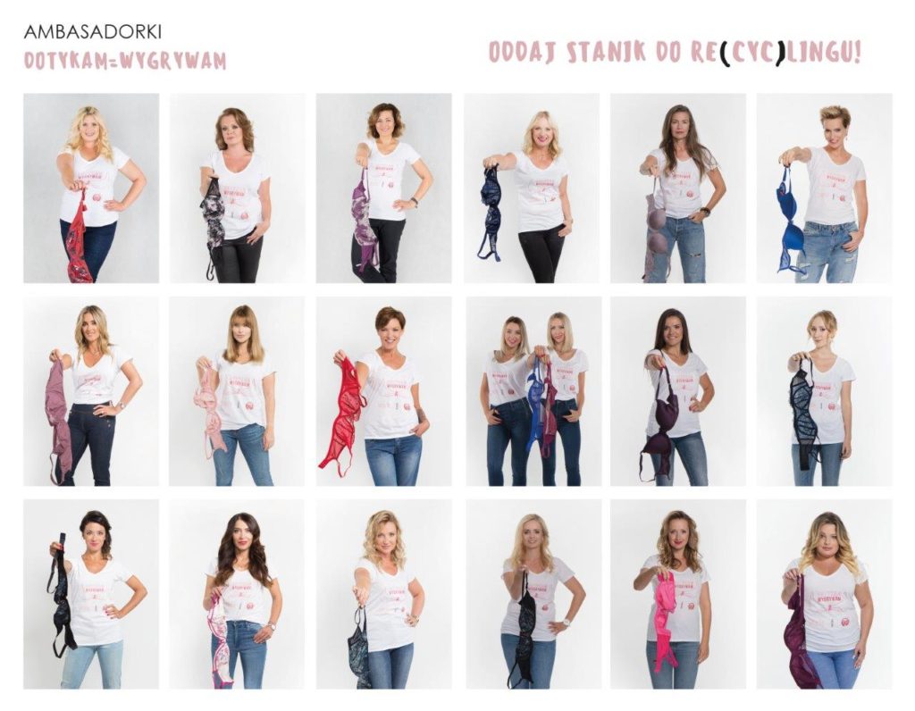 1 października w warszawskim hotelu Bellotto WYSTARTOWAŁA akcja charytatywna DOTYKAM=WYGRYWAM. Głównym jej celem jest promocja profilaktyki raka piersi poprzez regularne samobadanie piersi i noszenie dobrze dobranego biustonosza. Wszystkie zebrane podczas akcji środki zostaną przekazane stowarzyszeniu Polskie Amazonki Ruch Społeczny. Każdy ma szansę wesprzeć projekt. Wystarczy oddać swój stary, źle dopasowany biustonosz do reCYClingu, by zasilić konto stowarzyszenia. Celem jest zebranie 1 tony staników i uzyskanie kwoty 20 000 zł dla Amazonek.