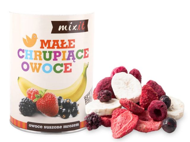 Jeśli mamy ochotę na słodką przekąskę w postaci letnich owoców, których teraz nie uświadczymy w sklepach – możemy sięgnąć po doskonałą alternatywę w postaci chrupiących owoców od Mixit. Możemy je zabrać ze sobą wszędzie. Doskonale sprawdzą się podczas wypadów z przyjaciółmi czy wieczornych spotkań towarzyskich.