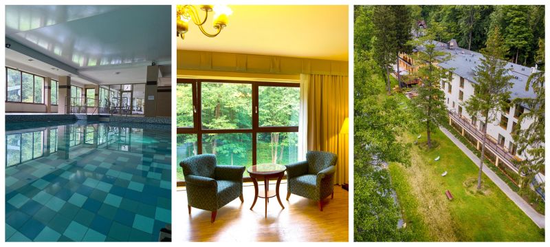 Na miejscu można także skorzystać z porad dietetyka, który pomoże dostosować dietę do wymagań zdrowotnych klienta. Ośrodek dysponuje profesjonalnie wyposażonym kompleksem rehabilitacyjnym, basenem, SPA, salą ćwiczeń oraz salami konferencyjnymi i restauracją z pysznym jedzeniem. A jeśli młodzi marzą o nastrojowym weselu w górach, znajdą tu wszystko, co trzeba, aby dzień ślubu miał niesamowitą, wyjątkową oprawę i pozostał niezapomniany. Sala weselna spokojnie pomieści około 160 osób.![]()