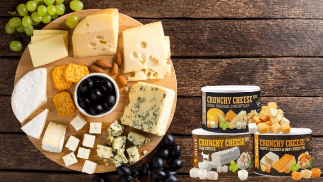 Masz ochotę na coś innego? Jeszcze bardziej wyrazistego, wyrafinowanego i niebanalnego? Crunchy Cheese: White cheddar & Red Liecester – ser suszony mrozem to chrupiąca odpowiedź na Twoje potrzeby. Charakterystyczny smak rodem prosto z Anglii, a do tego jedyny w swoim rodzaju, soczyście pomarańczowy kolor. Idealny smak do owoców, ale i do piwa. Czy znasz coś co umili Wam wieczór ze znajomymi bardziej niż chrupiący przysmak?