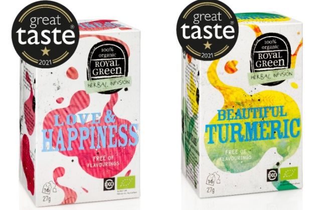 Napary ziołowe Royal Green zdobywają kolejne gwiazdy Great Taste: Royal Green Beautiful Turmeric oraz Royal Green Love & Happiness to gwiazdy Great Taste 2021 roku.