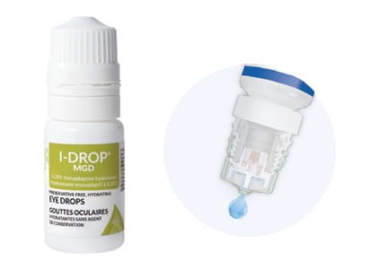 Krople oczne I-DROP MGD® przynoszą długotrwałą ulgę w zespole suchego oka (ZSO) związanym z dysfunkcją gruczołów Meiboma (MGD) oraz przy dyskomforcie spowodowanym podrażnieniami oka związanymi z ekspozycją na wiatr, słońce, wodę lub inne czynniki. Do stosowania jako nawilżenie i ochrona powierzchni oka przed podrażnieniami i/lub dla łagodzenia objawów.