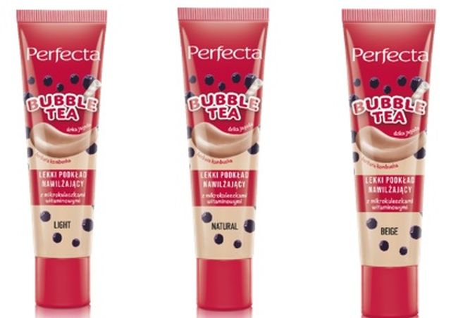 Marka Perfecta zainspirowała się tym efektownym napojem i stworzyła Bubble Tea Lekki podkład nawilżający. Zawiera on mikrokuleczki witaminowe, czyli liposomy transportujące w głębsze warstwy skóry, cenne cząsteczki takie jak: witamina C i prowitamina B5, które zapewniają cudowne odżywienie i regenerację. To prawdziwa uczta upiększająca: doskonale wyrównuje i ujednolica kolor skóry, nie pozostawia efektu maski, a jednocześnie nawilża, odżywia i przywraca pełnię blasku. Aplikacja podkładu przypomina spotkanie z najlepszą przyjaciółką, po którym czujesz się jeszcze piękniejsza i bardziej pewna siebie!