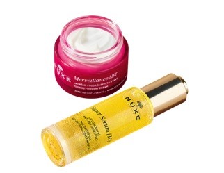 Dwa kosmetyki plus regularny automasaż – przetestuj i zobacz efekty na własnej skórze. Pierwszy krok dla każdej cery, w każdym wieku to skoncentrowane serum, na bazie którego warto wykonać automasaż. Po pierwsze, nawilżona skóra łatwiej się rozciąga, po drugie rozgrzana tkanka skuteczniej wchłania dobroczynne składniki aktywne produktu. NUXE Super Serum [10] Uniwersalny koncentrat przeciwstarzeniowy to skoncentrowane serum o innowacyjnej formule, z naturalnym kwasem hialuronowym i tysiącami mikrokapsułek z czystymi olejami roślinnymi. Ma niesamowicie przyjemną konsystencję i przepiękny, luksusowy zapach, dzięki czemu wynosi proces masażu na zupełnie inny poziom.
