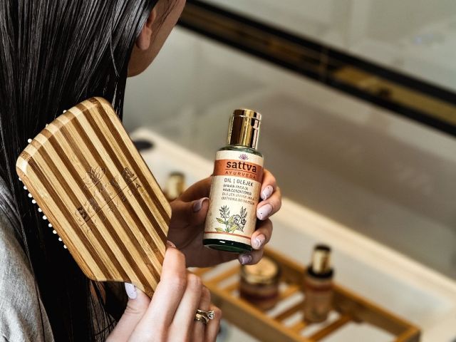 Sattva Ayurveda oferuje również akcesoria do włosów. Wśród nich znalazła się bambusowa szczotka, która będzie świetnym uzupełnieniem Twojej codziennej rutyny pielęgnacyjnej. Zaokrąglone szpilki szczotki wykonane z woskowanego bambusa delikatnie masują skórę głowy, ułatwiają pielęgnację i zapewniają łatwe rozczesywanie. Używanie szczotki od Sattva ułatwia pielęgnację i zapewnia łatwe rozczesywanie długich włosów – nie szarpie ich i nie uszkadza ich struktury.