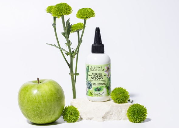 Barwa Naturalna Peeling trychologiczny Octowy to nowy produkt w portfolio marki do specjalistycznej pielęgnacji skóry głowy. Opiera się na składnikach od pokoleń stosowanych w domowych rytuałach pielęgnacyjnych, został też wzbogacony o najnowszej generacji substancje, których działanie jest potwierdzone naukowo. Posiada kompleksowe, nabłyszczające i odżywcze działanie zarówno na włosy, jak i na skórę głowy. Specjalnie dobrane składniki produktów z serii działają oczyszczająco, nawilżająco i regenerująco na skórę głowy i włosy, dzięki czemu dostają one optymalną dawkę składników odżywczych, a w rezultacie rosną długie, zdrowe i lśniące.