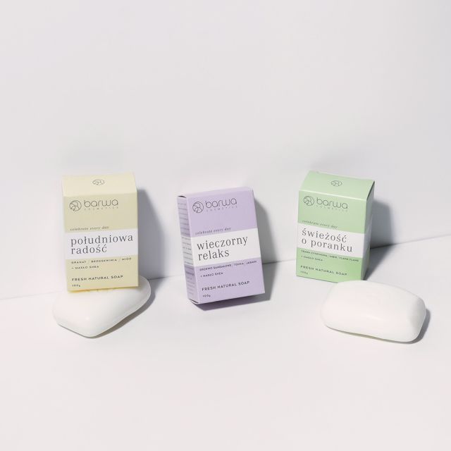 ŚWIEŻOŚĆ O PORANKU, POŁUDNIOWA RADOŚĆ I WIECZORNY RELAKS? KAŻDA PORA DNIA JEST DOBRA, BY SPRAWIĆ SOBIE ODROBINĘ PRZYJEMNOŚCI, ZADBAĆ O SKÓRĘ I SWOJE SAMOPOCZUCIE. BARWA COSMETICS STWORZYŁA 3 NOWE MYDŁA, DZIĘKI KTÓRYM ZWYKŁE CHWILE STANĄ SIĘ WYJĄTKOWE, A CODZIENNE RYTUAŁY – PRAWDZIWĄ CELEBRACJĄ DNIA.