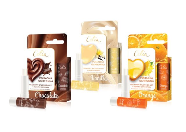 NOWE POMADKI OCHRONNE CELIAPOKOCHASZ NIE TYLKO ZA ICH PIELĘGNACYJNE WŁAŚCIWOŚCI, ALE TEŻ ZA FORMUŁĘ, KTÓRA PO APLIKACJI NA USTACH STAJE SIĘ AROMATYCZNYM OLEJKIEM. DO WYBORU MAMY WERSJĘ O ZAPACHU CZEKOLADY, POMARAŃCZY LUB WANILII, KTÓRE DOSKONALE WPISZĄ SIĘ W ZIMOWĄ AURĘ.