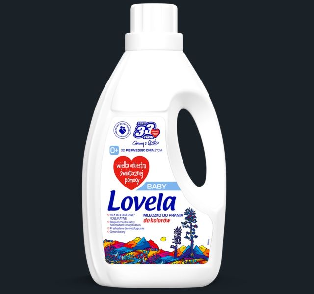 Tegoroczny 33. Finał już po raz piąty połączy siły dwóch gorących serc – Loveli i WOŚP. Z tej okazji, jak co roku, na sklepowych półkach pojawiła się limitowana kolekcja mleczek do prania Lovela Baby w butelkach zaprojektowanych przez Jurka Owsiaka. Opakowania zdobi charakterystyczne serduszko WOŚP. Produkt dostępny jest w sprzedaży w całej Polsce, w sklepach i sieciach współpracujących