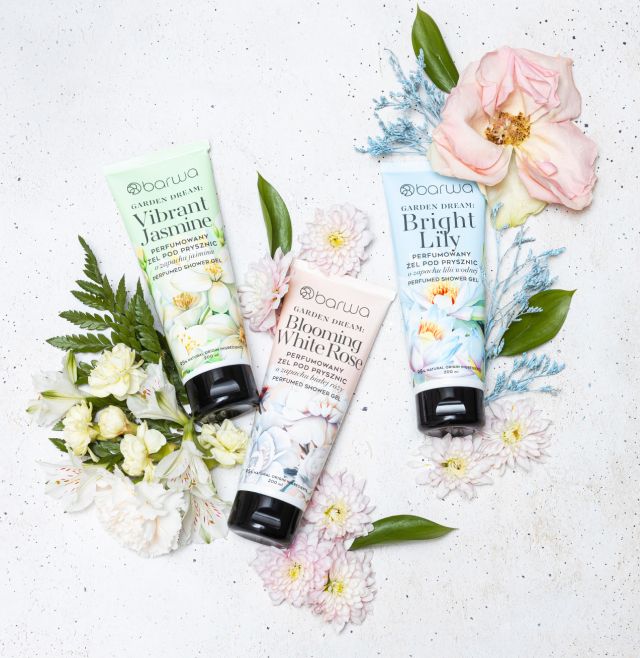 KĄPIEL W PŁATKACH RÓŻ, ŚWIEŻEGO JAŚMINU CZY SUBTELNEJ LILII? TO MOŻLIWE! NOWE ŻELE POD PRYSZNIC GARDEN DREAM OD BARWA COSMETICS DZIĘKI NIEZWYKŁYM NUTOM ZAPACHOWYM POZWOLĄ NAM PRZENIEŚĆ SIĘ DO KWIATOWEGO OGRODU. ICH ZAPACH PRZENIESIE NASZE ZMYSŁY DO ŚWIATA NATURY, A DLA CIAŁA KĄPIEL BĘDZIE CZYSTYM RELAKSEM, KTÓRY POZWOLI ODZYSKAĆ WEWNĘTRZNĄ RÓWNOWAGĘ I WITALNOŚĆ.