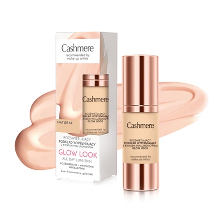 NOWY PODKŁAD CASHMERE GLOW LOOK ZAPEWNIA SKÓRZE ŚWIETLISTE WYKOŃCZENIE I AKSAMITNE WYGŁADZENIE. DZIĘKI ZAWARTOŚCI DROBINEK ROZŚWIETLAJĄCYCH GOLD 24CERA WYGLĄDA ŚWIEŻO I PROMIENNIE, A KWAS HIALURONOWY GŁĘBOKO JĄ NAWILŻA. PODSUMOWUJĄC:ALL DAY LUMI SKIN!